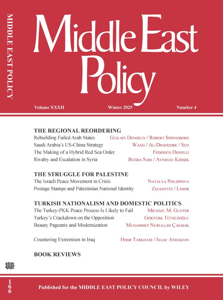 The Middle East Policy Council is a tax-exempt, 501(c)(3) nonprofit, nonpartisan, educational organization founded in 1981. Our goal is to provide policymakers and the public with credible, comprehensive information and analysis on political, economic, and cultural issues pertaining to U.S.-Middle East.
